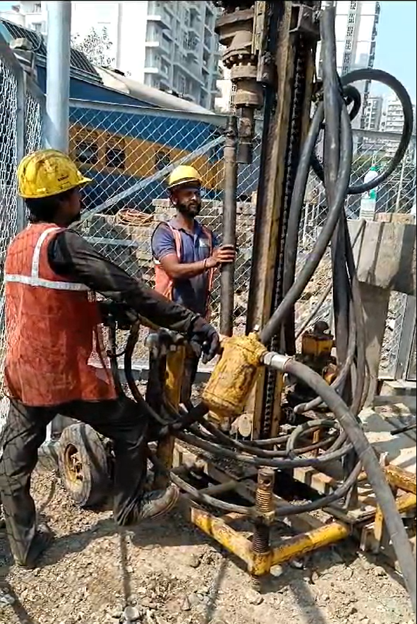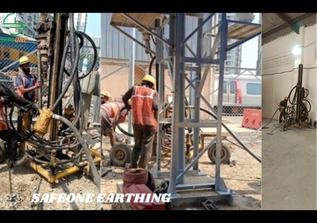 A boring machine is used to install chemical earthing tripod is used for drilling